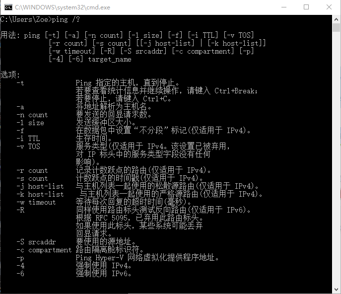 4) -iTTL     指定發送回響請求消息的IP標題中的TTL字段值, Windows  XP系統主機默認值一般是128,TTL的最大值是255。